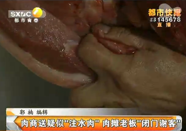肉商送疑似“注水肉” 肉攤老板“閉門謝客”陜西都市青春頻道報道,轄區內肉商肉商送疑似“注水肉” 肉攤老板“閉門謝客”