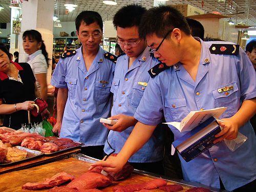 隨后,記者向食藥監部門反映此事,當日14時許,海口市瓊山區中山食品藥品監督管理所執法人員趕到現場。執法人員用手摸了摸攤位上的牛肉,并沒有立即做出判斷。“是不是注水牛肉,通常可以用手摸,看看黏不黏手,但這不能作為執法的依據。”執法人員隨即聯系了瓊山區食品藥品監督管理局有關負責人,詢問是否可以用食品快檢車檢測注水肉,得到的答復是“暫時不可以”。該執法人員稱,目前海口食藥監部門正計劃引進一種可以快速檢測注水肉的儀器CSY-R肉類水分測定儀,待儀器配備到位后,他們將對培龍市場的所有鮮肉攤進行檢測,排除隱患。